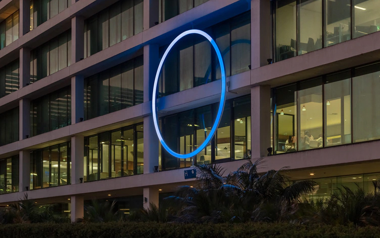 One of the challenges of getting the lighting right was a “moat” type space that surrounds the building. Intended to allow natural light into the basement windows, the team had to consider this as they positioned each luminaire cluster.