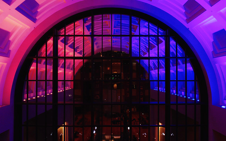 The installation utilized 36 Blast Powercore gen5, RGBW luminaires with a 20-degree spread lens to fulfill the desired design objectives. The goal was to illuminate the arched ceiling that stands at an astounding 28.9m (95ft) from the ground floor. The luminaires were mounted in an alcove beneath the arched ceiling, approximately 600-900 mm (2-3 ft) apart. The new luminaires were seamlessly integrated with the existing controller infrastructure with data supplies by Data Enabler Pro gen2.