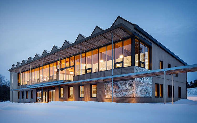 La Pêche (Quebec, Canada) has constructed a new townhall that was designed for the future. The dramatic two-story structure is comprised of solid wood, both inside and out, and presents an impressive facade on the main street of the community. And it incorporates the latest innovations in sustainable construction. With its forthcoming Passivhaus certification - an international standard that guarantees optimal energy efficiency – it will be the first Passivhaus-certified institutional building in the province of Quebec.
