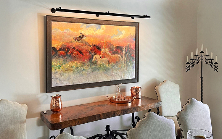 When the owner of a Spanish-Colonial traditional interior style home in North Scottsdale wanted to enhance with light both artwork and a collage of his wife's modelling for magazine covers, he approached Lightform Lighting’s Chad Rothe for some ideas. With five art areas needing to be lit, some very wide, many of the lights they found weren’t long enough.