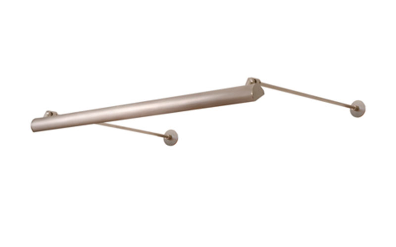 Kurve Display Sign features a lambertian white diffuser that provides uniform light without hotspots. At 7.5 watts per foot, the 24 volt DC channel contains 85+ or 95+ CRI LEDs and mounts 14 inches from wall. It may be ordered with a 4.6 inch round or square canopy that fits on a standard 4 inch square electrical box with round plaster ring; a 2.8 inch square canopy, or a special feed-thru stem for floating signs. Hinges on the fixture arm rotates up to 90 degrees (from facing the wall to straight down). Kurve is powered by a Class 2 remote power supply up to 40 feet away. Available from 12 inches to 120 inches/10 feet (Chrome max at 84 inches). May be ordered in 3, 5, 8 or 10 inch increments. Fixtures include a 5 year warranty.
