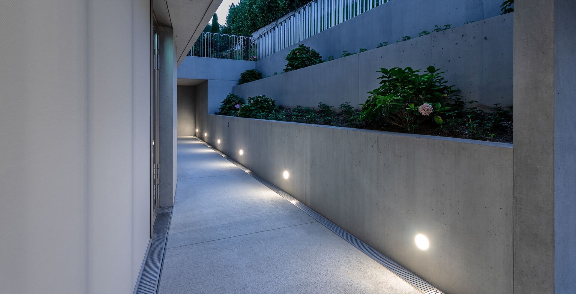 The minimalist appearance of the architecture is also reflected in the lighting concept. In fact, only two luminaires were used to illuminate the structure: the BUTTON 100 W and the linear INSERTO MEDIUM 40 F SYSTEM. Both products provide a diffuse, soft light that illuminates the space uniformly.
