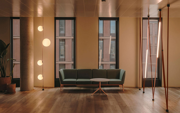During working hours and more especially during the late afternoon the day light evokes an atmosphere of wellbeing, one that promotes productivity, and after sunset each of the spaces is transformed through creative and functional luminous ambiences, customised to each work setting, without affecting the goal of supporting employee’s sensations when work rituals are finished for the day.